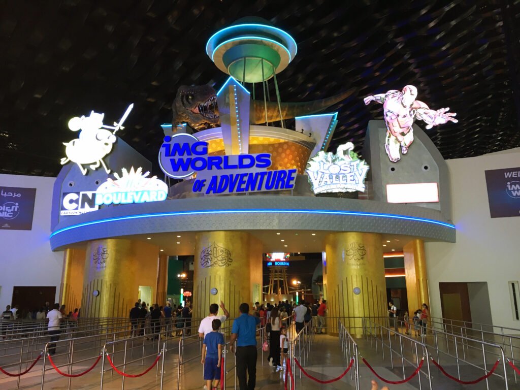 Located in Dubai, IMG Worlds of Adventure stands as a massive 1.5 million square feet indoor theme park that offers endless entertainment possibilities. Upon arrival, guests are welcomed into IMG Boulevard, the bustling central hub filled with enticing shops, delicious dining options, and exciting entertainment venues. This sets the stage for what awaits within the four distinct zones of the park. The Marvel zone is a dream come true for fans of superheroes and villains as they can experience heart-racing adventures on high-speed roller coasters and immersive 3D rides featuring their favorite characters. On the other hand, the Lost Valley – Dinosaur Adventure zone takes visitors on an exhilarating journey back in time with its towering Velociraptor coaster and lifelike animatronic dinosaurs. The Cartoon Network zone is every fan’s dream come true as beloved animated characters from shows like The Powerpuff Girls and Adventure Time come to life through a mix of rides, attractions, and live entertainment. But let’s not forget about IMG Boulevard itself, which offers more than just a gateway to the park’s attractions; it’s also a destination in itself. This lively thoroughfare boasts themed restaurants serving up various cuisines, shops selling souvenirs and merchandise, and an electric atmosphere that adds